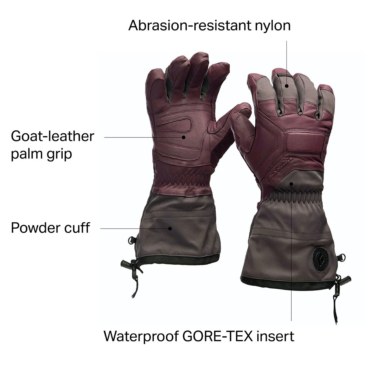 Built to withstand everyday abuse in extreme weather, the Guide Ski Glove, the warmest professional-grade glove from Black Diamond, will keep your hands dry, warm, and comfortable as you spend your winter on the slopes. No matter which side of the boundary you are on, the gloves will fend off the wettest, coldest days of the season. The abrasion-resistant face fabric holds up to the rigors of daily mountain wear while a Gore-Tex insert keeps moisture at bay. An insulated, removable liner with PrimaLoft, boiled wool, and fleece provide warmth for your fingers when the temperatures plummet. For further warmth and comfort, a generous powder cuff seals out the snow so you can spend your days enjoying the turns, not warming cold hands.