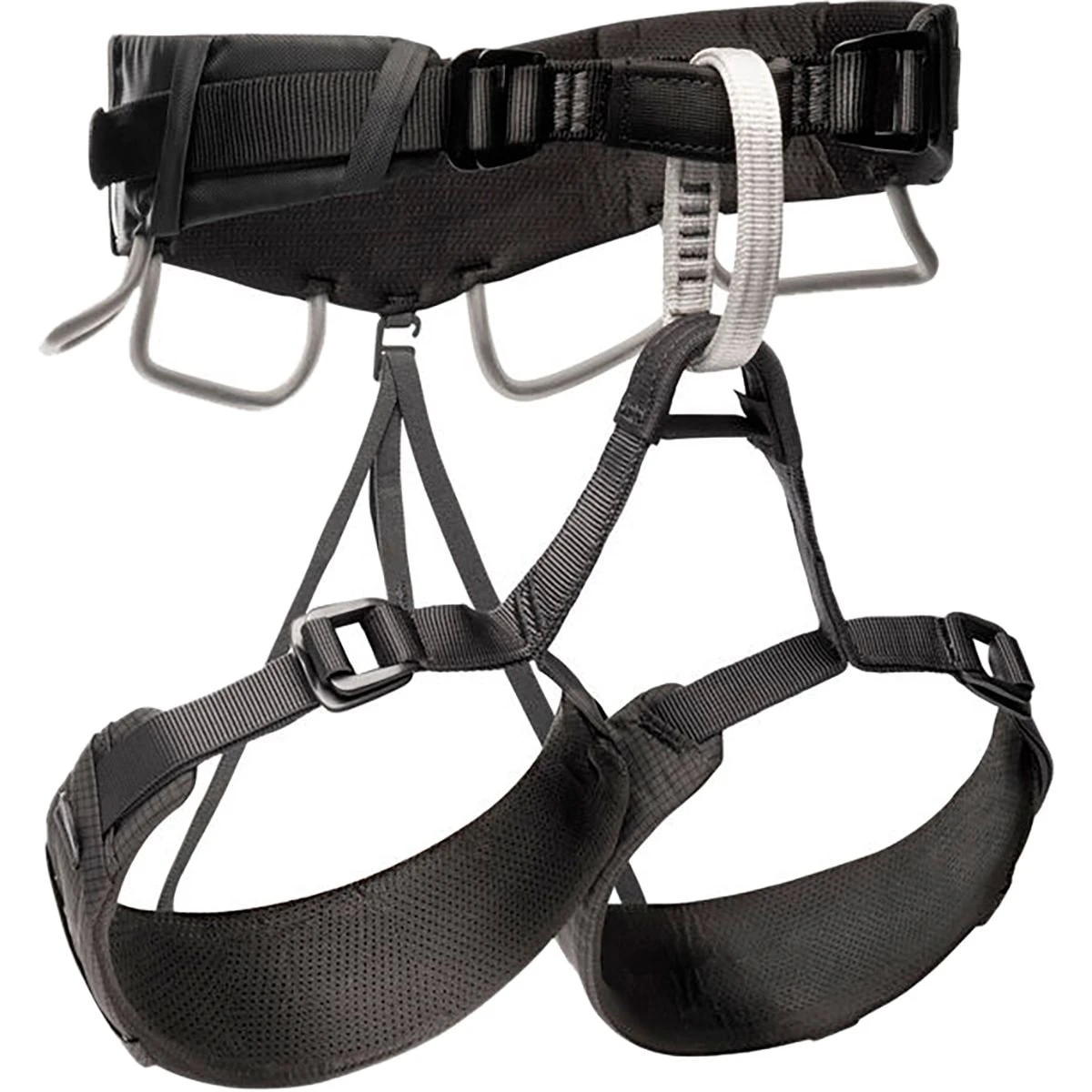 Conquer the crag with reliable support in Black Diamond’s Momentum 4S Harness. This versatile harness features maximum adjustability for a large range of fit, with two speed buckles at the waist, and one at each leg loop for easy adjustment whether you’re climbing with your winter-warmest gear on, or going minimalist in scorching heat. A tall, bullhorn-shaped waist belt keeps comfortable for long belays.