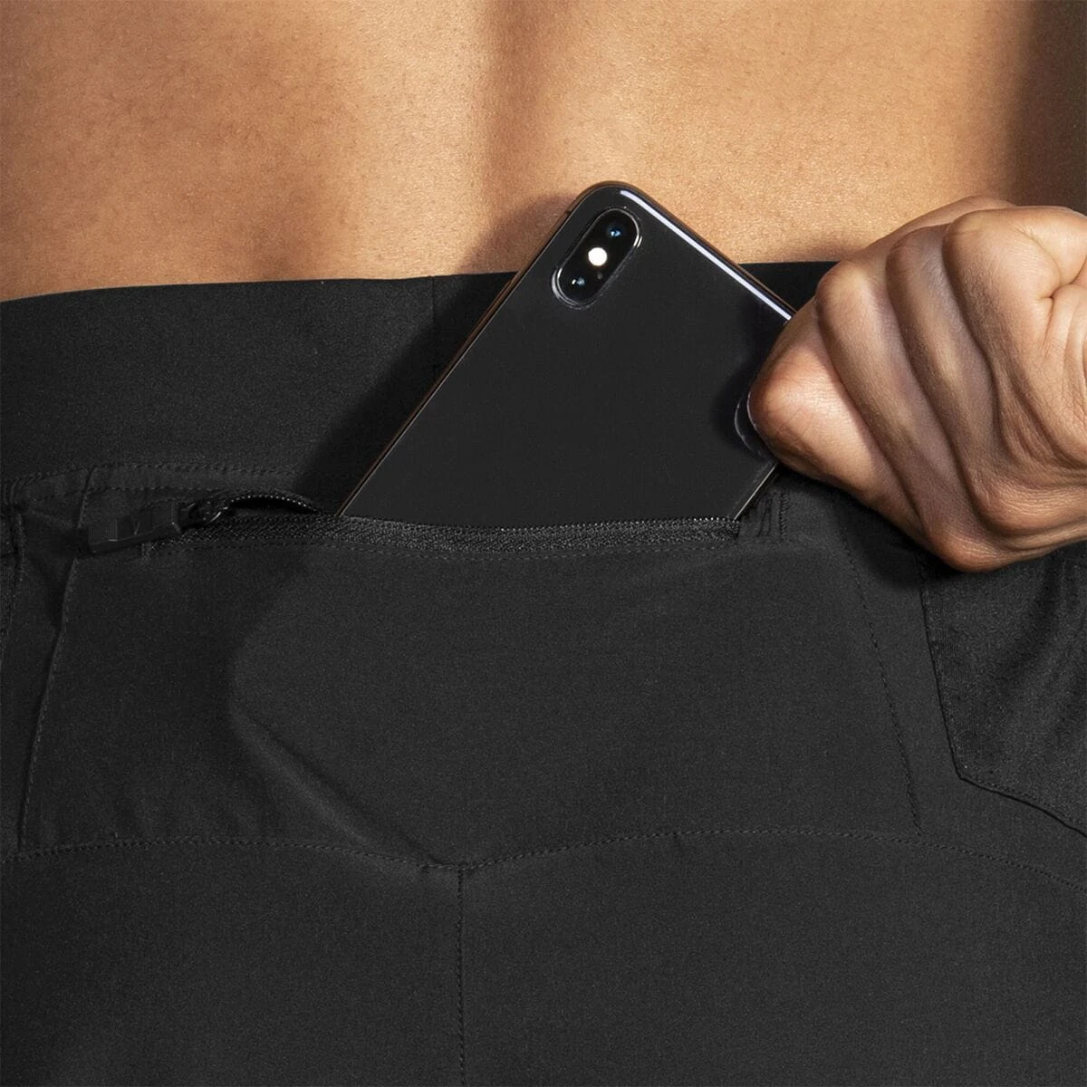 - Zippered center back pocket secures your phone
