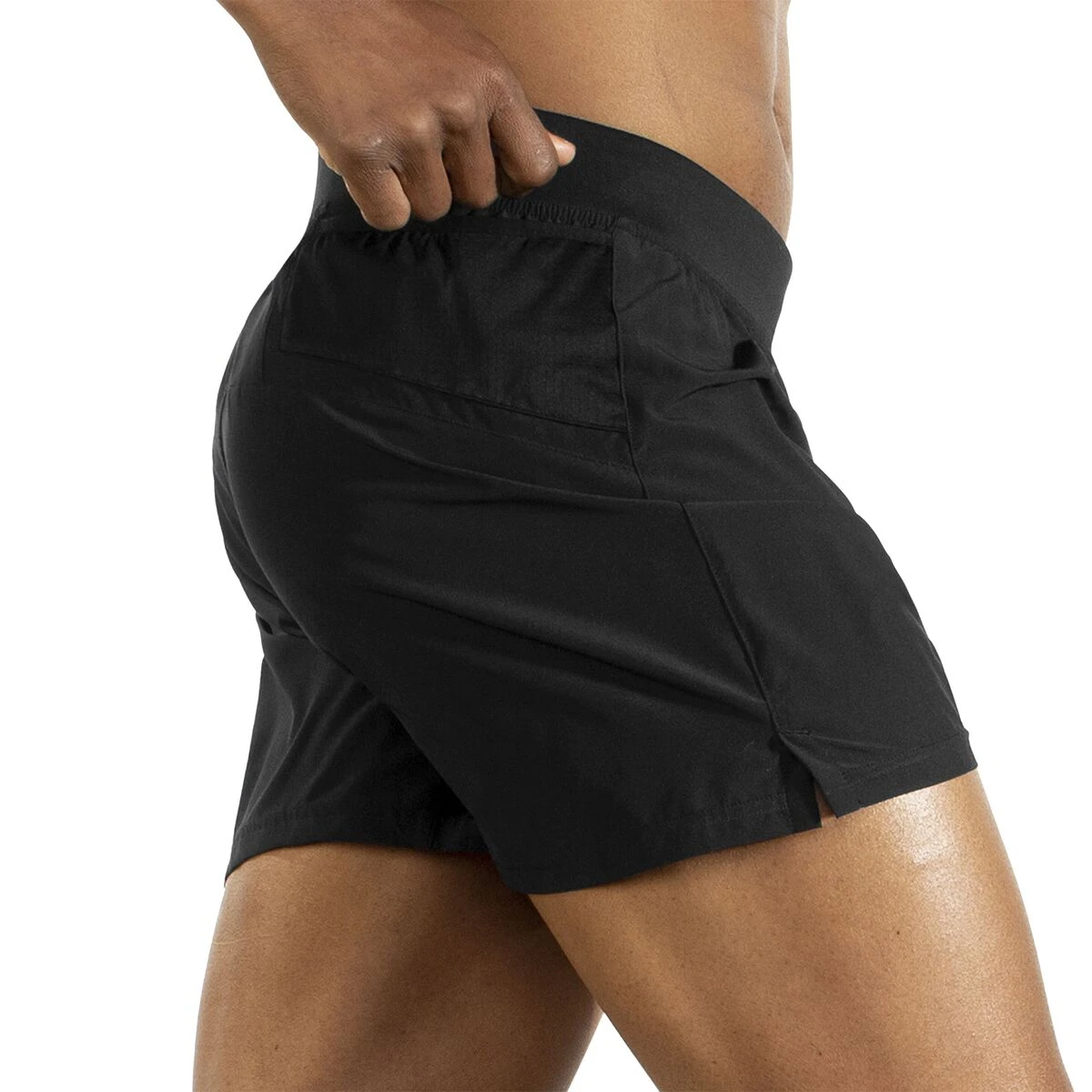 From sprint repeats to long summer miles, the Brooks Sherpa 5in Short keeps us cool and moving free. Breezy, quick-drying fibers make sure sweat doesn’t weigh us down, and a built-in brief liner enhances the blend’s wicking performance. The fine-tuned fit features a flat, low-profile waistband for a comfortably secure fit that sits discreetly under our hydration belt, while the streamlined pocketing carries our phone and gels on shorter missions. Equipped with side hem notches, this short lets us open up our stride restriction free.