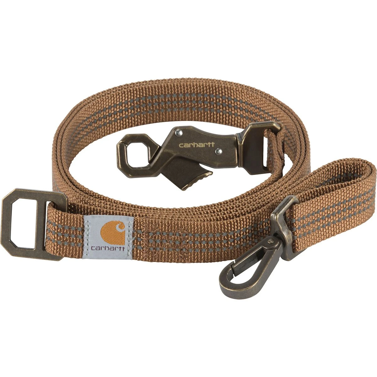 The Tradesman Leash is a durable lead for our furry friends that work hard and play harder. Durable nylon webbing stands up to chewing and stays strong through training. Dual clips allow us to loop the leash around our bodies or conveniently secure our pup to a nearby tree.