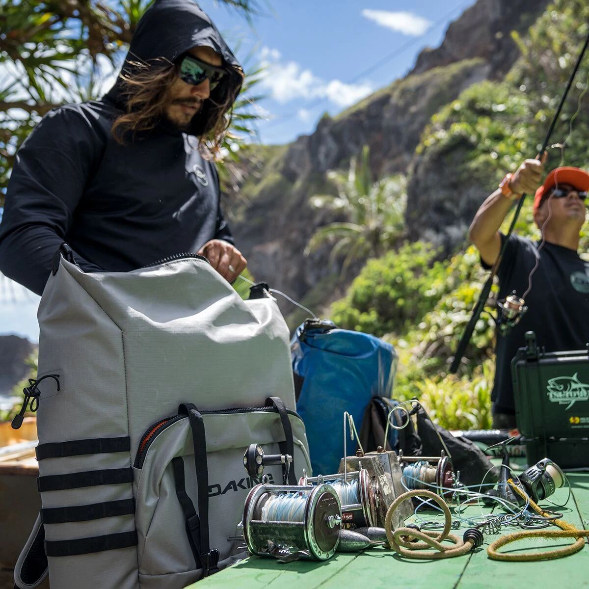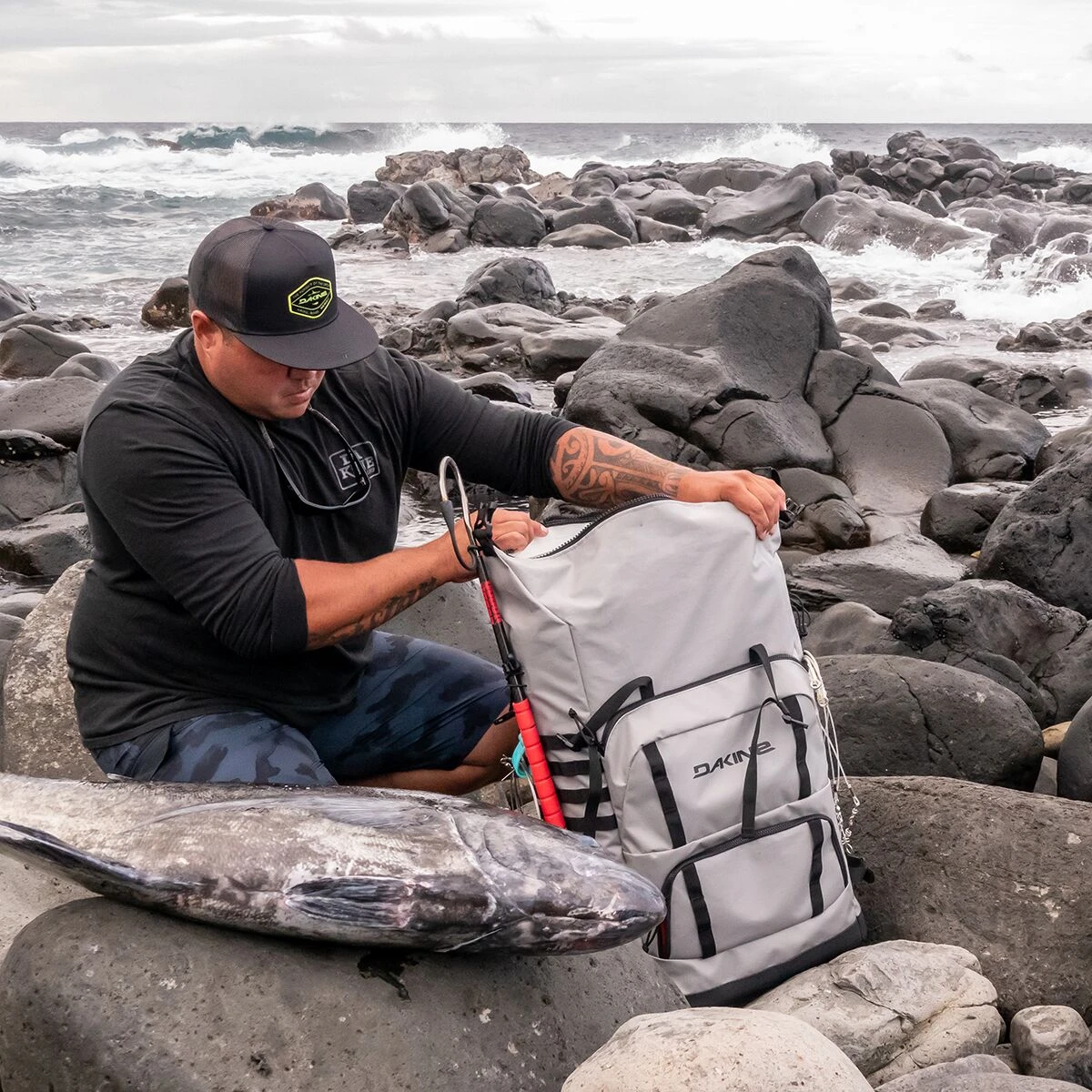 Swap the cooler, tackle box, and loose fishing rods for the all-in-one Ulua 60L Fish Pack. This backpack’s main compartment is insulated, acting as a strong, cold, and sufficiently sized cooler for hauling home our catch. There are plenty of storage pockets for our fishing equipment, plus four rod holders that keep hands free for flies, snacks, and beverages.