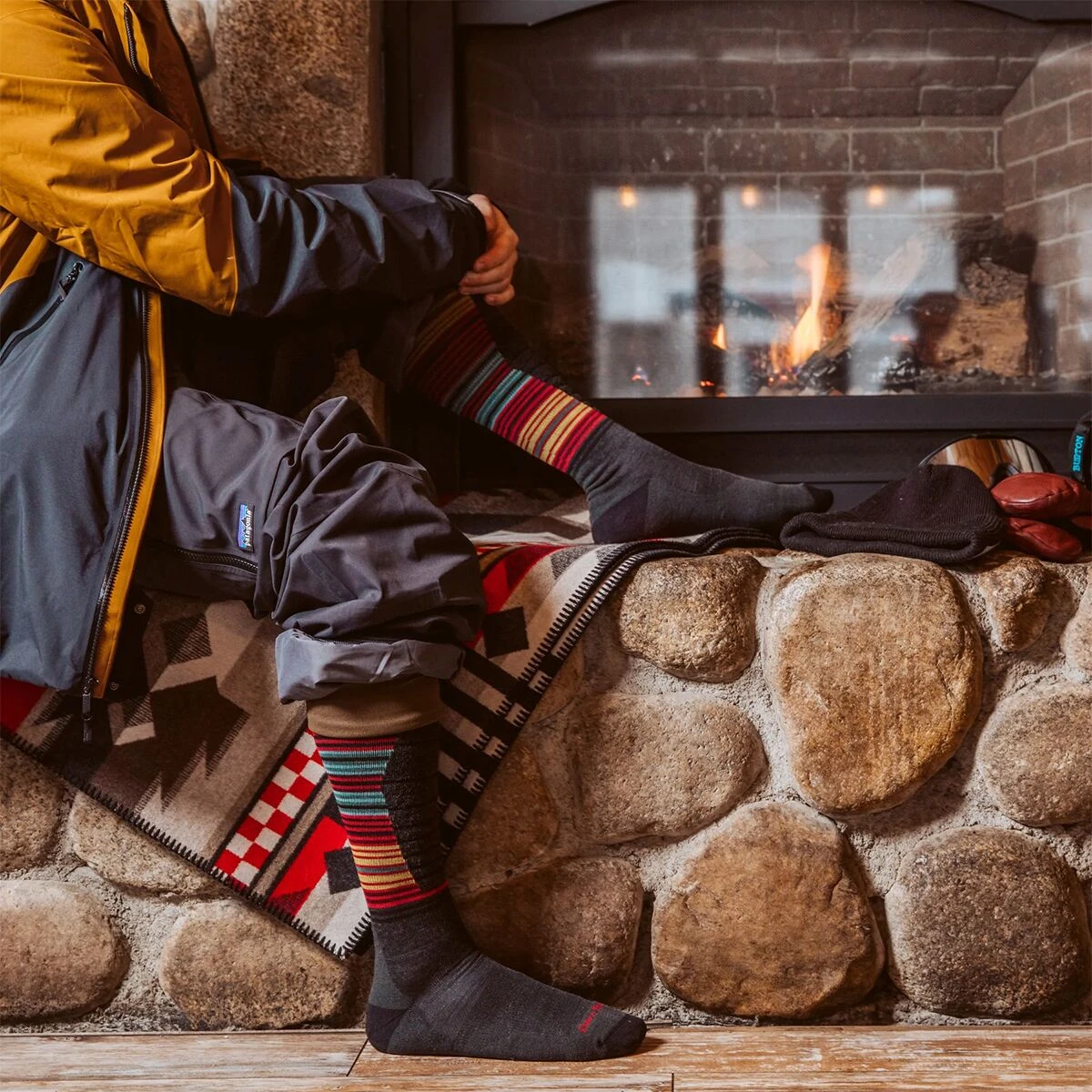 With inspiration and feedback from a Vermont-based snowboarding legend, Darn Tough brings us the Backwoods OTC Lightweight Cushion Padded Shin Sock for lasting comfort through daylong shred sessions. With padding underfoot and along the shin, this pair mutes vibrations and prevents boot bang, while the soft woolly blend manages moisture and holds strong through a 100-day season.