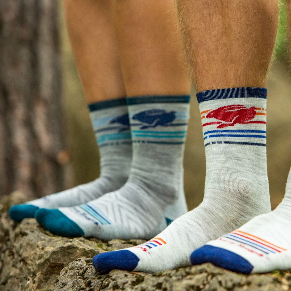 Made to skip, sprint and always move, the Pacer is an ultra-lightweight sock with cushion that gives your paws blister-free support for those herky-jerky twists and turns on the single track. Backed by Merino Wool construction, its the ultimate all-terrain sock for casual trail joggers and adventure runners alike.