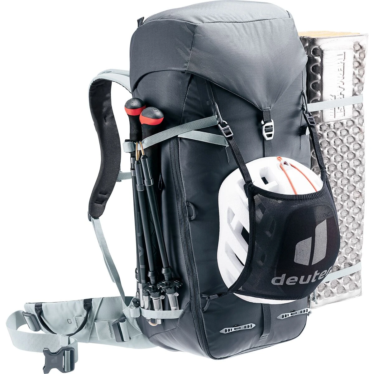 Made for serious mountain play, the Deuter Guide 34+8L Backpack packs in plenty of features for our ski tours, climbs, and mountaineering expeditions. Lighter than its predecessor, the Guide remains a sturdy pack with nylon ripstop for durability and a V-frame Alpine Back System that shifts the load onto our hips for safe carry. We like the close-to-back fit for the best balance and performance when we’re climbing and also like the new J-shaped zipper, which gives us easy front panel access to all our gear. The 38-liter capacity is perfect for all-mountain pursuits with additional storage available, thanks to the extendable lid and external attachments for our helmet, ice axe, trekking poles, and skis.