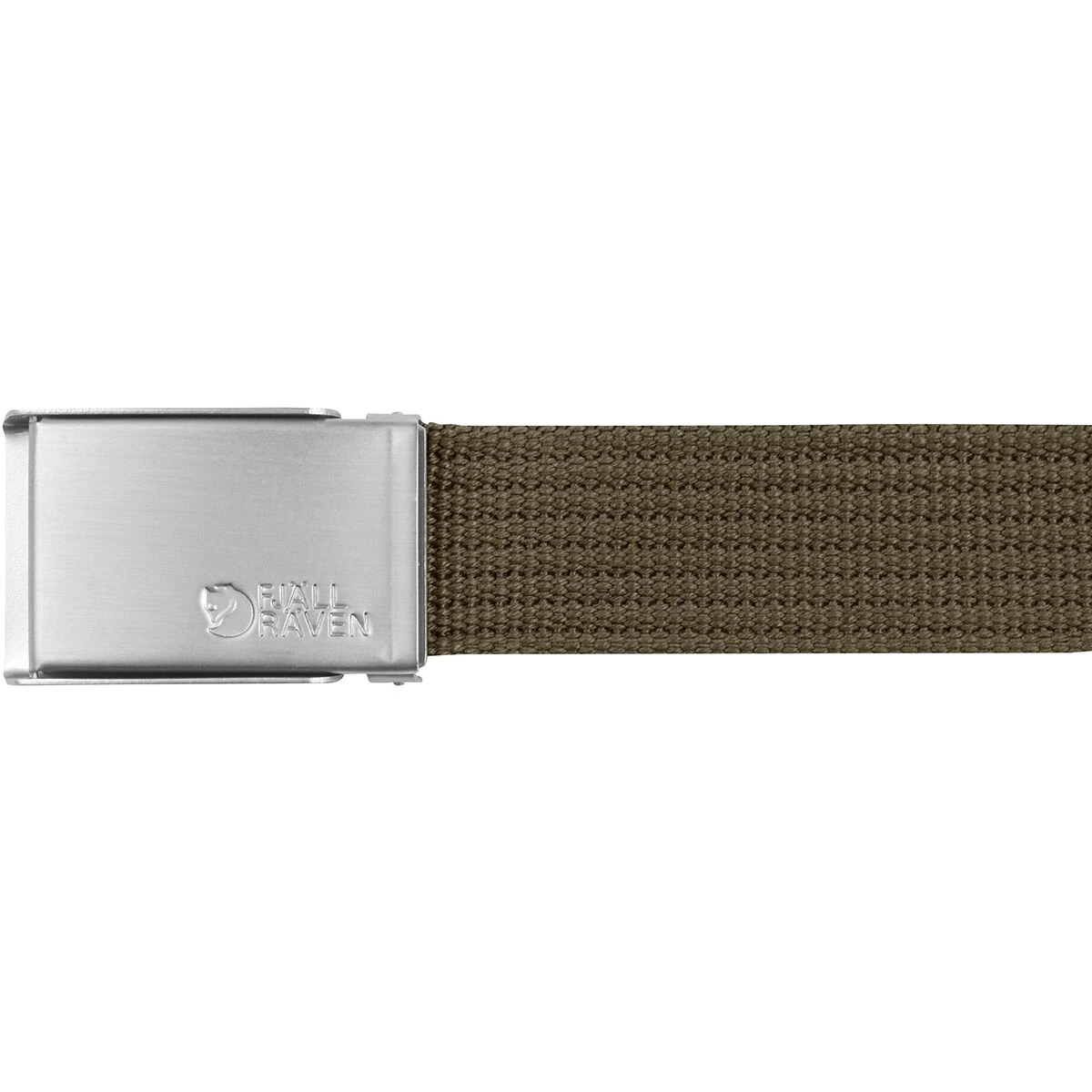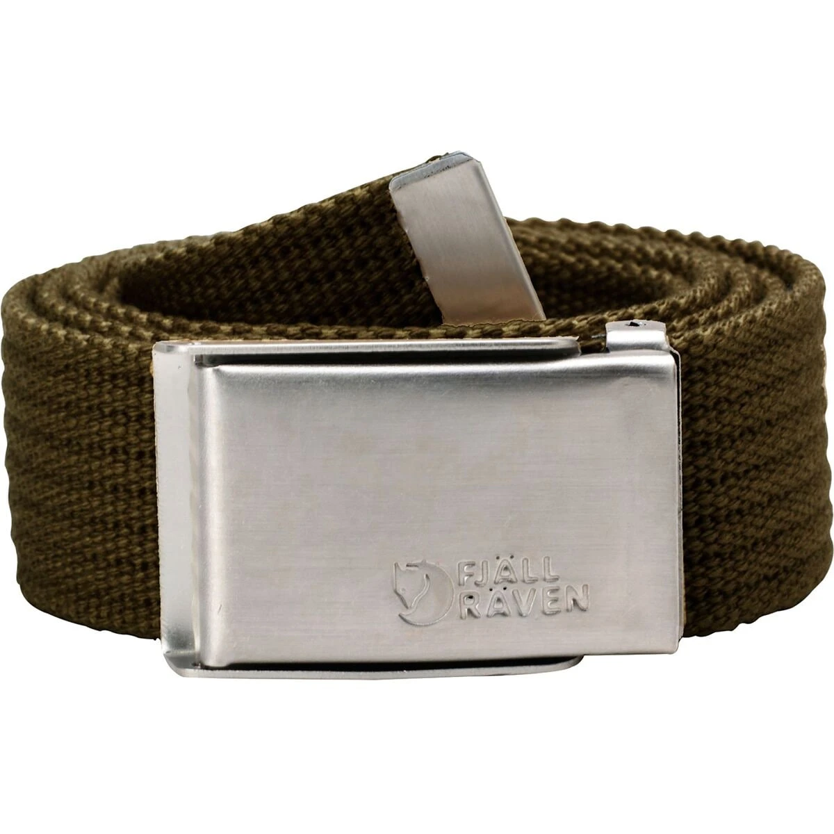 Canvas belt that is easily shortened. 3 centimeters wide. Buckle with teeth. Metal tip.