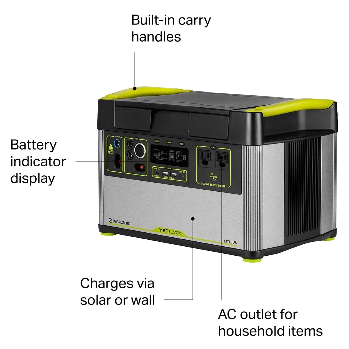 New to the Goal Zero family and designed from the ground up, the Yeti 1500X Solar Generator is one of the most innovative and versatile portable power stations to be created yet. Built-in surge allowances and multi-stage protection means it’s compatible with a wide range of devices, from lights and laptops to power tools and refrigerators, so you can use it during emergency power outages, at base camp on expeditions, when working in the field, or just on an extended weekend camping trip.