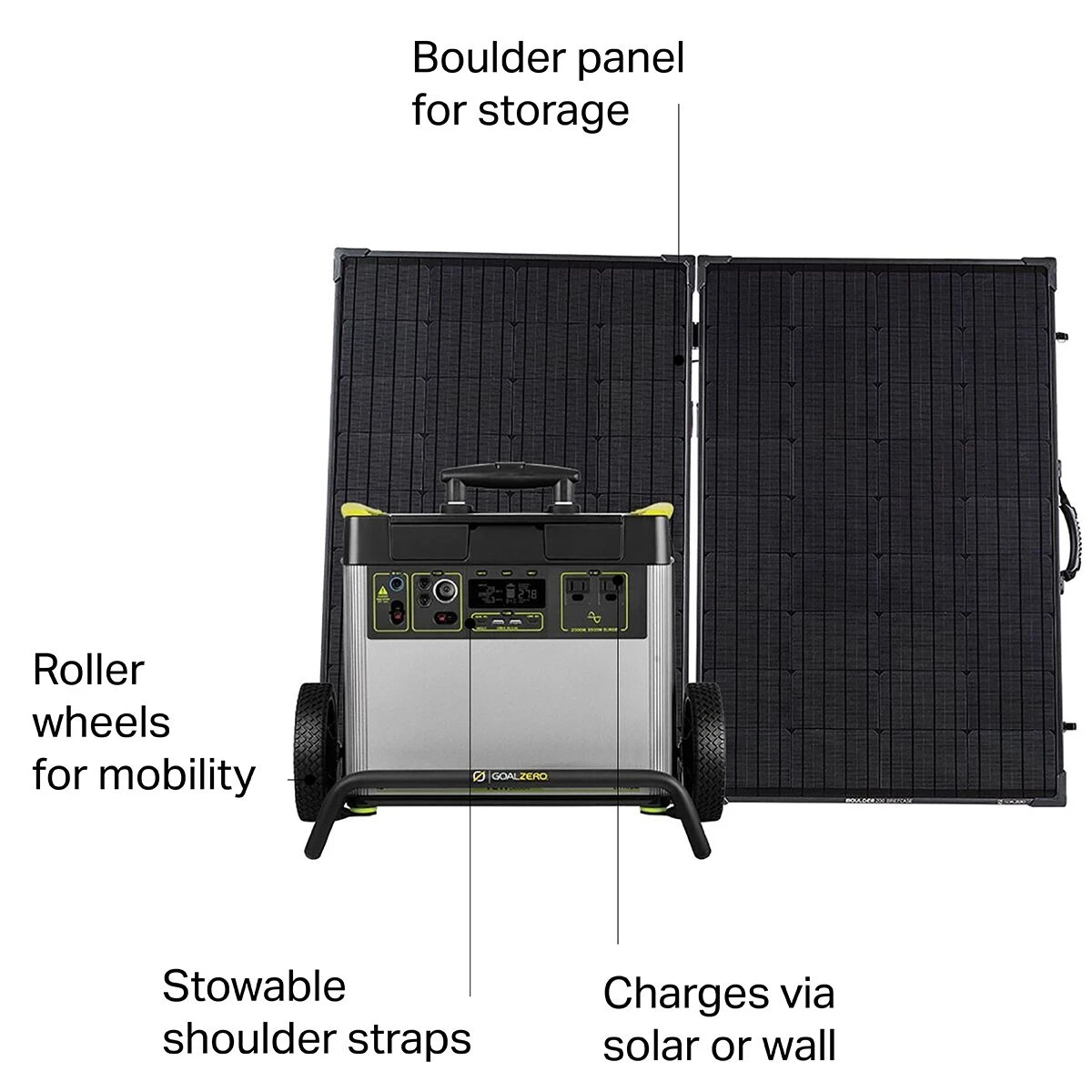 The Goal Zero Yeti 3000X + Boulder 200 Briefcase Solar Generator Kit is the beefy power alternative we need in the event of a power outage, natural disaster, or extended research trip in an RV. The Yeti 3000X holds a whopping 3032 watt-hours, which is plenty to run lights, music, devices, and even an appliance or two. For example, it can run a 42-inch LED TV for 31 hours, a portable fridge for up to 122 hours, and a simple light bulb for over 270 hours—seem like enough power on the road?