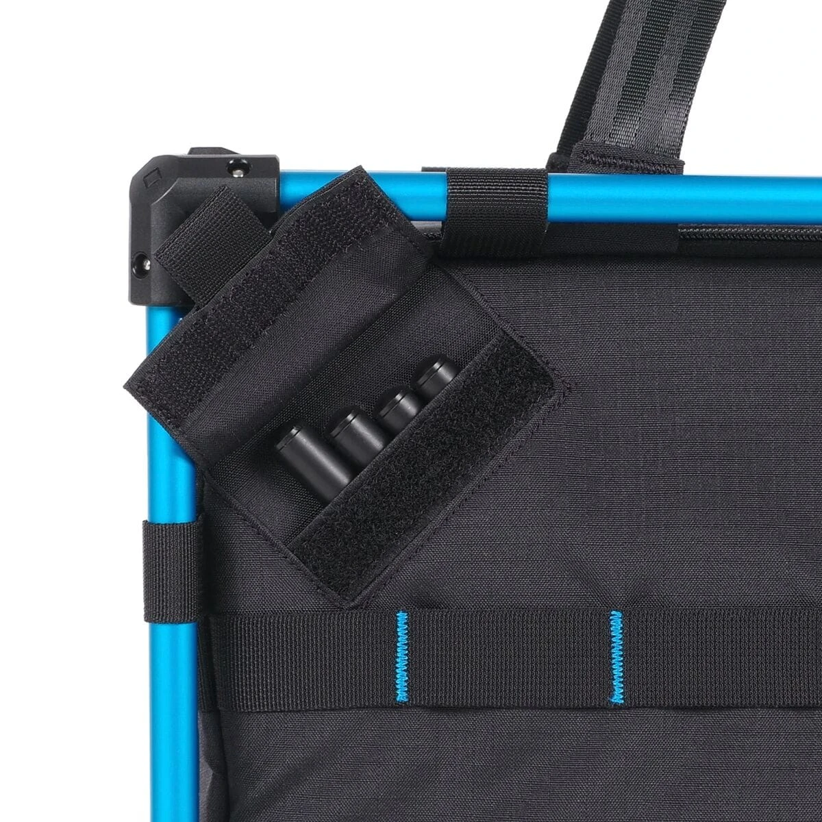We build our own workstation in the backcountry with the Outdoor Field Office instead of driving around an unfamiliar town in search of a coffee shop. This storage bag fits our essential electronics for work and has a deployable table that works perfectly with any Helinox backpacking chair (sold separately).