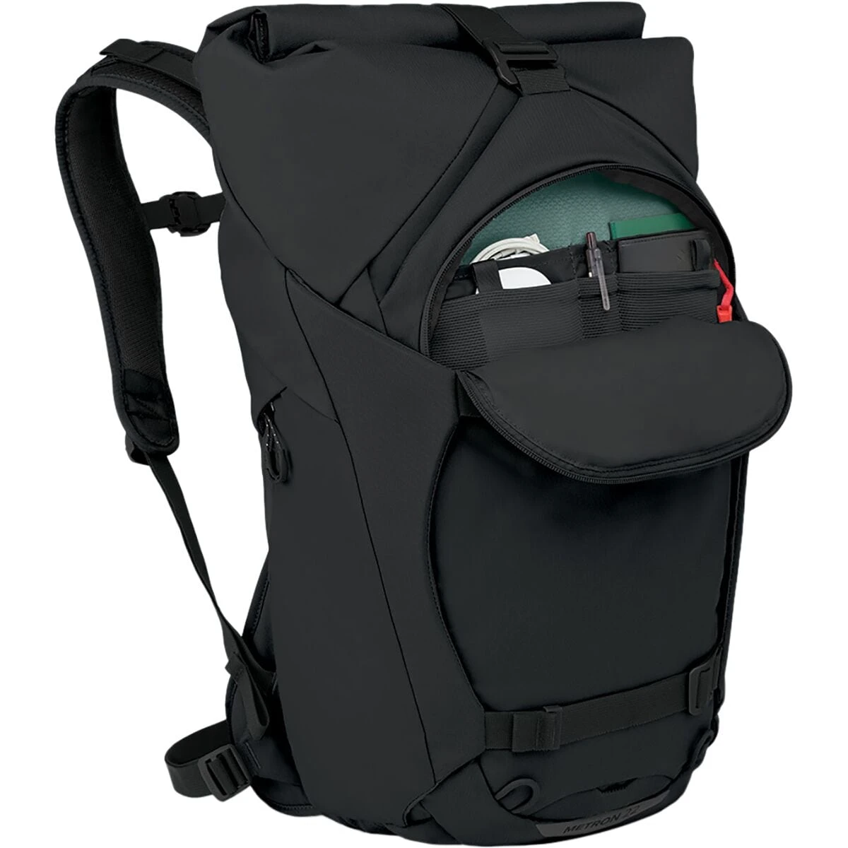 When we are commuting by bike we trust the Osprey Packs Metron 26 Roll Top Bag to keep us prepared and organized. The roll-top closure and central zip provide easy access to the main compartment and allow for overpacking when the situation calls for it. Meanwhile, the internal 16″ laptop sleeve helps keep our data secure while dual external stretch pockets keep water and small essentials within arm’s reach.