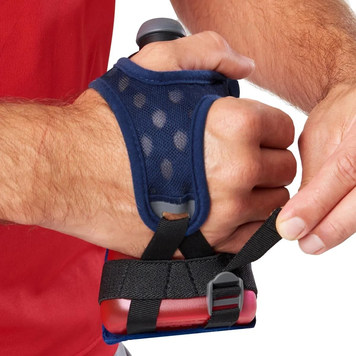 Designed as the ultimate hydration handheld ideal for running, hiking, walking and other sports. The QuickSqueeze 12oz Handheld features a grip-free, fully adjustable hand strap and storage for your phone and more.