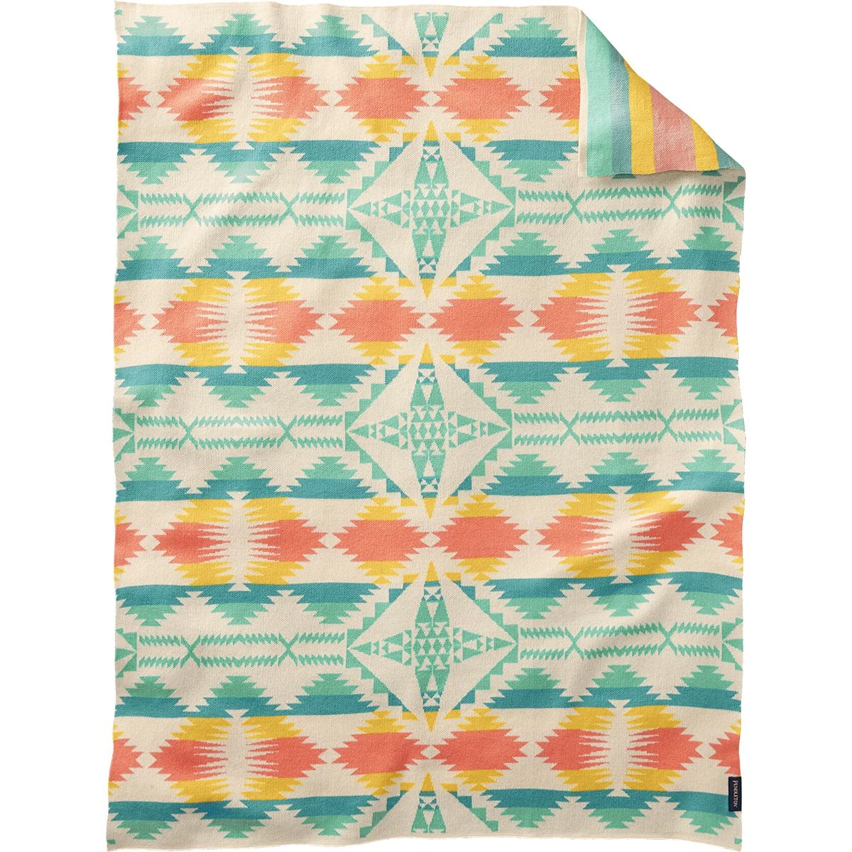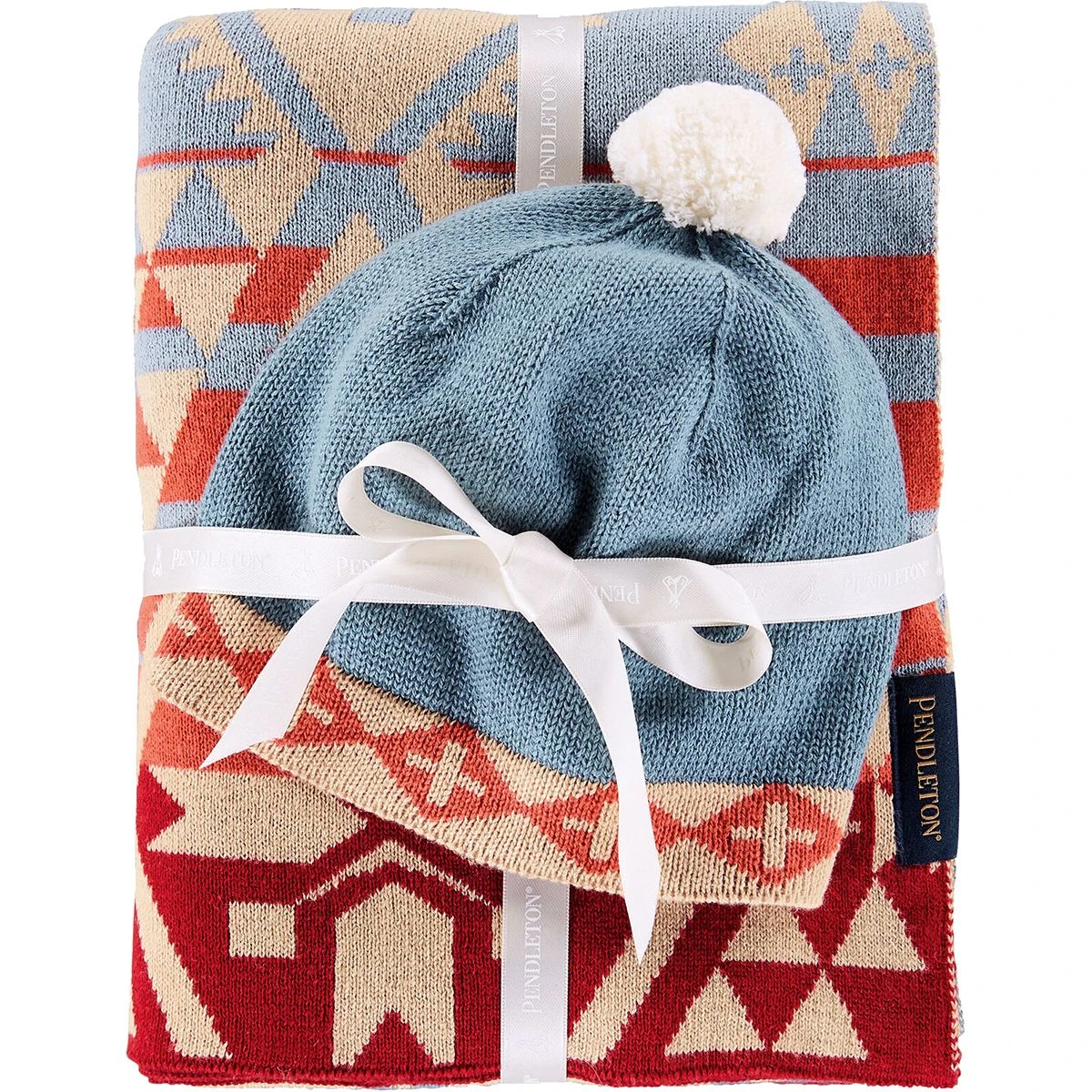 Wrap up your child and keep them cozy on your walk to see the leaves change color with the Pendleton Knit Baby Blanket and Beanie. Made from cotton fabric, this blanket is soft and comfortable and is sourced from materials in the USA.