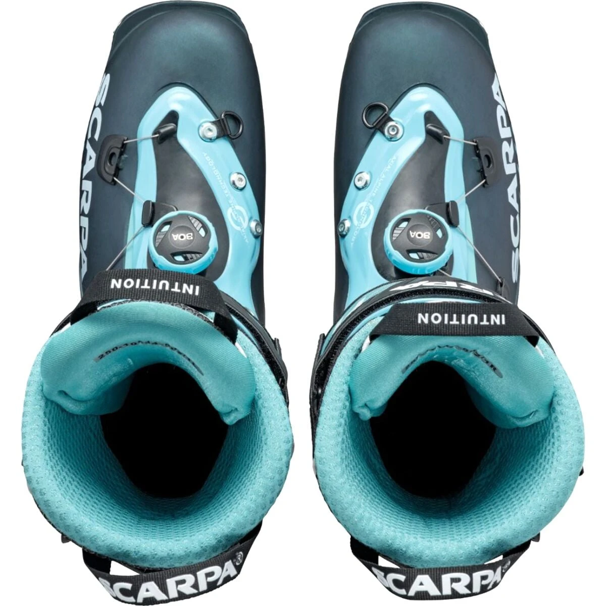 With lightweight touring performance that others may measure themselves against, the F1 Alpine Touring Boot is just the ticket we need to tackle long slogs, steep ascents, and any terrain we point our tips at when it’s time to descend. Its responsive, laterally stiff design can be accredited to its construction from strong, lightweight Grilamid with an over-injected carbon insert to further stiffen the boot and improve the overall power transmission and responsiveness to the ski. Inside the shell, the updated, women-specific Intuition liner is sculpted at the cuff to aptly accommodate the shape of our calves, and can be fully thermo-molded for a blend of performance fit and comfort. The collar strap boasts integrated RECCO technology, a search system that’s widely used by mountain rescue in emergencies, and a Vibram UFO EVO sole offers dependable traction on rocky terrain or icy bootpacks.