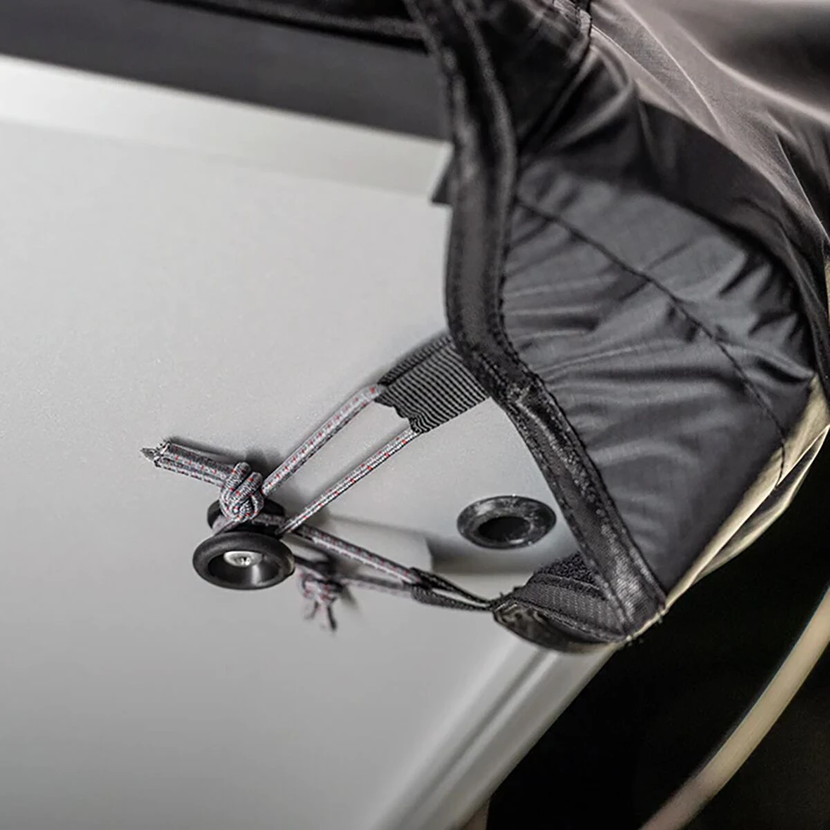 - Mesh and canvas windows adjust to block out light and allow airflow