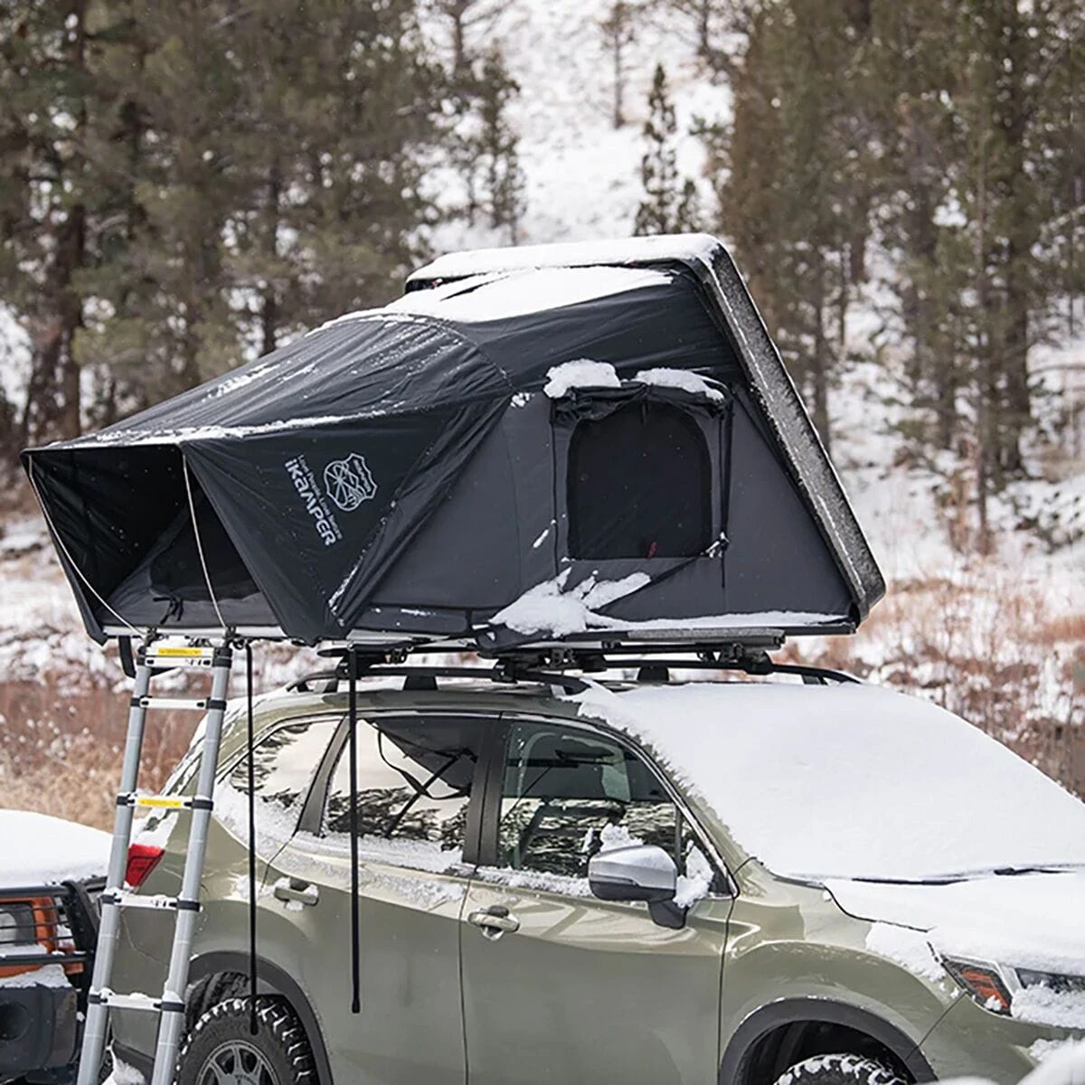 - Rooftop tent with a small footprint for multi-car compatibility