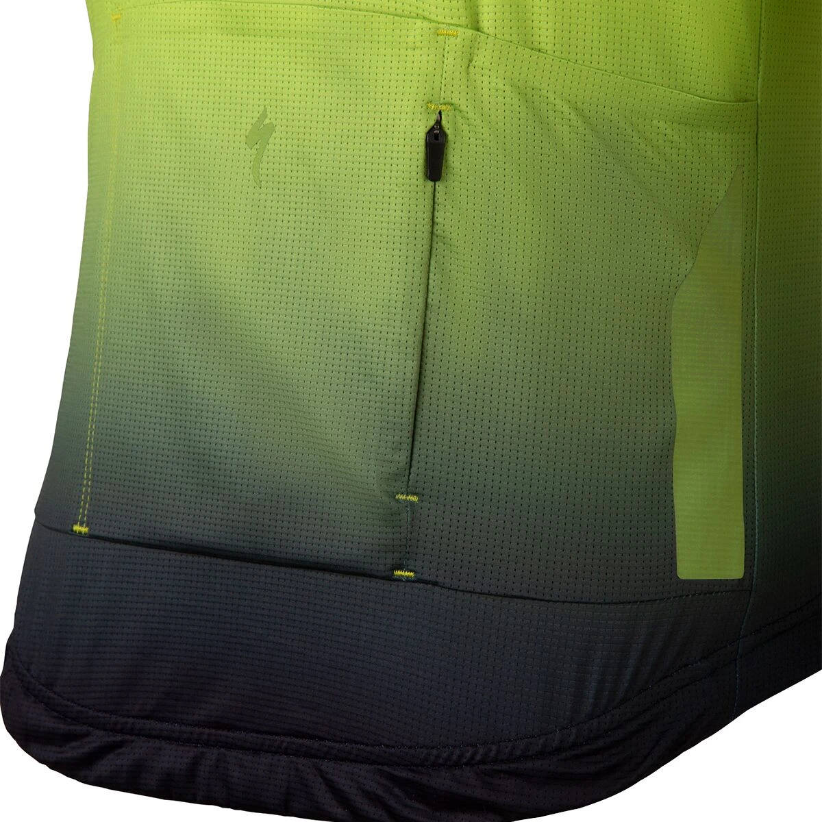 Be fast, comfortable, and visible on the road with the Specialized HyprViz SL Air Jersey. Crafted from lightweight, soft mesh VaporRize, this jersey wicks sweat, dries quickly, and maintains comfortable support where you need it when getting after it in the saddle. As the name implies, this jersey is also incredibly reflective to give you an added sense of safety in low-light conditions thanks to its vibrant Hyper Green fabric and unique reflective trims.