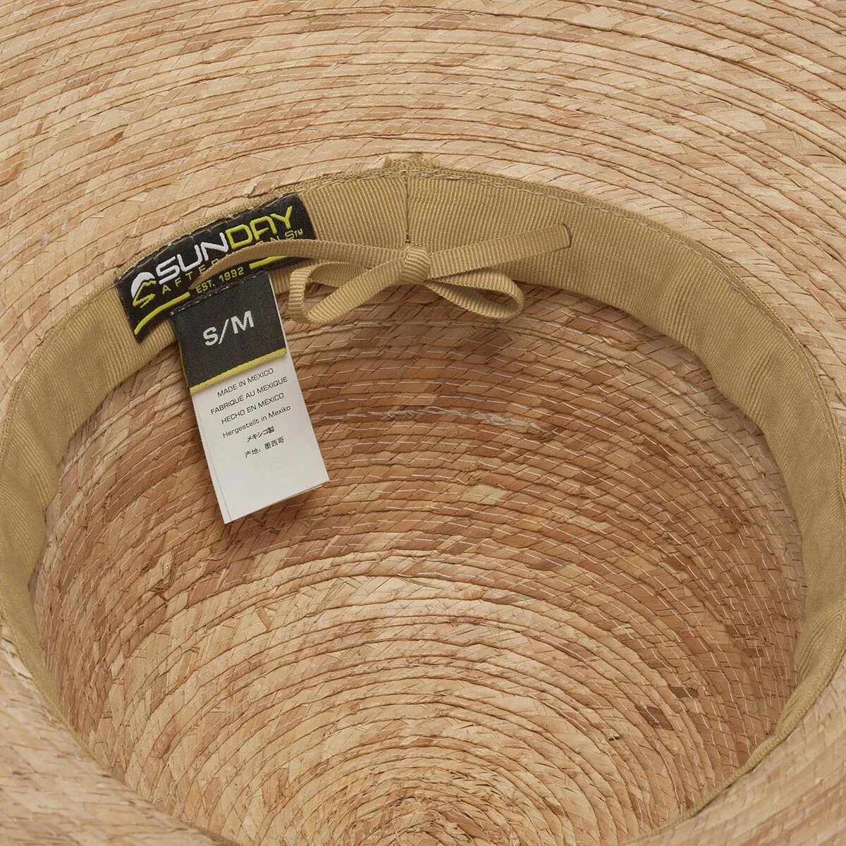 - Grosgrain sweatband manages moisture in hot weather