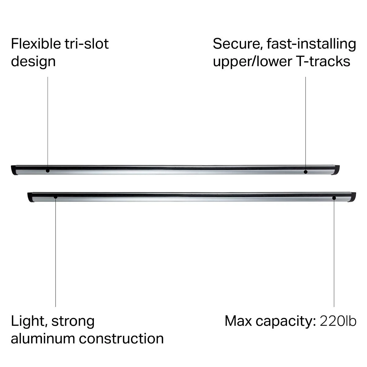 - Lower T-tracks create a secure connection with the vehicles roof