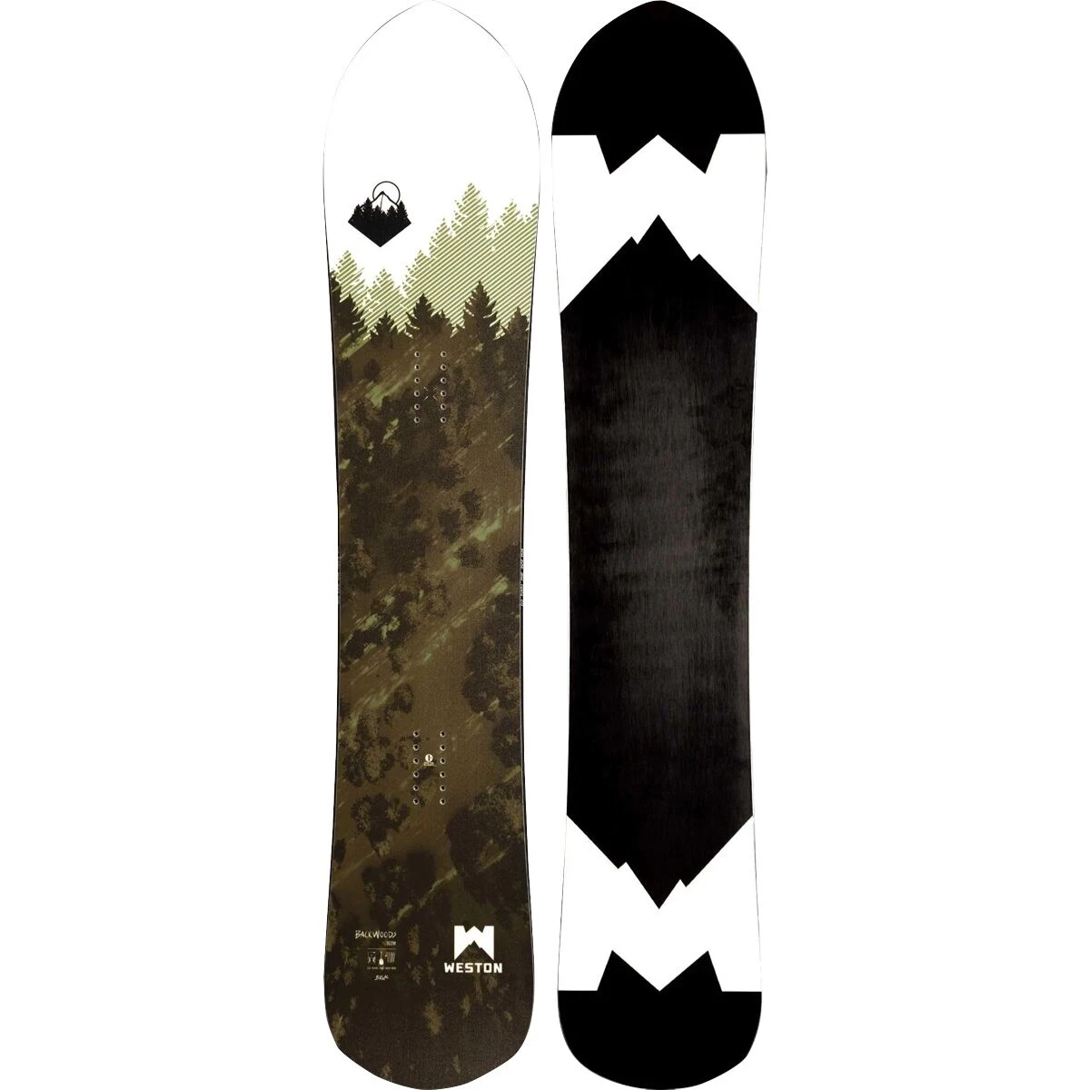The aptly named Weston Backwoods Snowboard is a freeride destroyer we love for pointing down pow fields or tight tree runs but also riding more technical big mountain lines as well. This versatility is achieved by taking a typical directional powder board shape with a wider nose, narrow tail, and set back stance and throwing in a stiffer than expected flex. This shape drops the tail for excellent float in deep pow while providing the stability needed to rail hard turns on bigger faces.