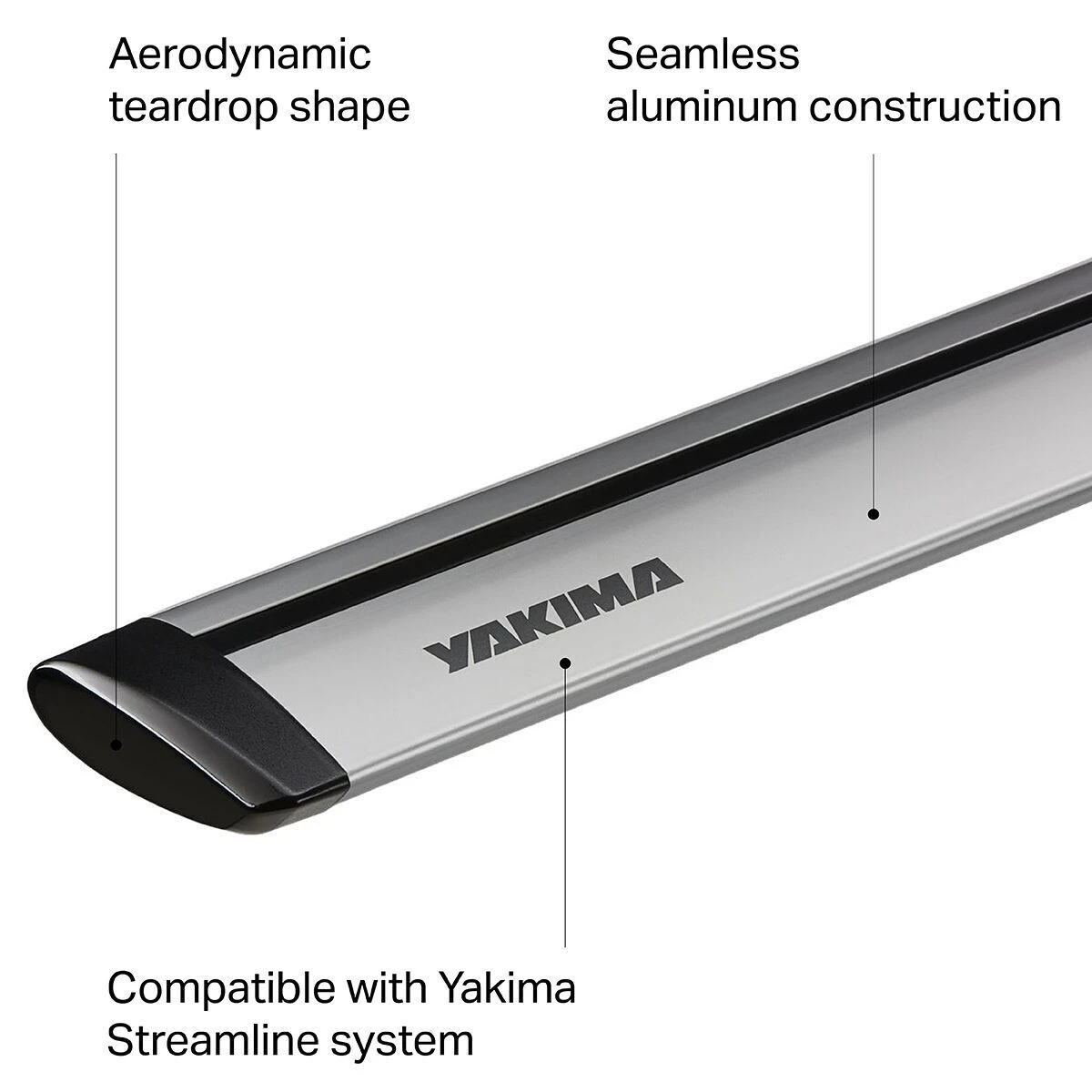 Designed with a slippery JetFlow teardrop shape, the Yakima JetStream Base Rack Bars deliver aerodynamic efficiency, robust carrying performance, and quiet travel at highway speeds. Part of the new Streamline System, the JetStream Base Rack Bars mount to Yakima’s Timberline, Ridgeline, and Skyline Towers (sold separately). The JetStream Base Rack Bars include two crossbars and four endcaps.